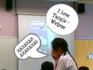 School had been fun these days. Talking and interacting with the people around me is cool, especially Weiyue :) Needless to say, her Yangle as well, LOL.