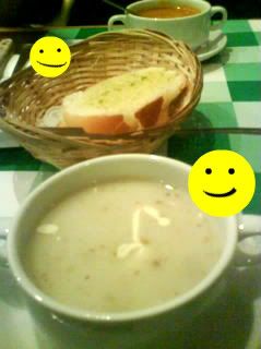 My Cream of mushroom, Friend's Lobster soup, our garlic bread :)