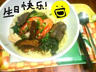 The noodle Daddy cooked lol sort of "celebrate" his birthday in singapore. Very nice but I cant eat the oyster and prawns will get allergy :(
